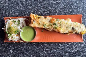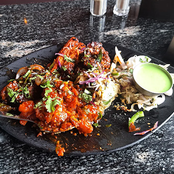 Fried cauliflower bites are tossed in a spicy Indo-Chinese/garlic/soy sauce. One of the most popular starters that has an ideal combination of crunch and zest.